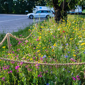 Wir bepflanzen und säen es mit klimaangepassten und heimischen Wildarten an, die nicht pflegeintensiv sind.